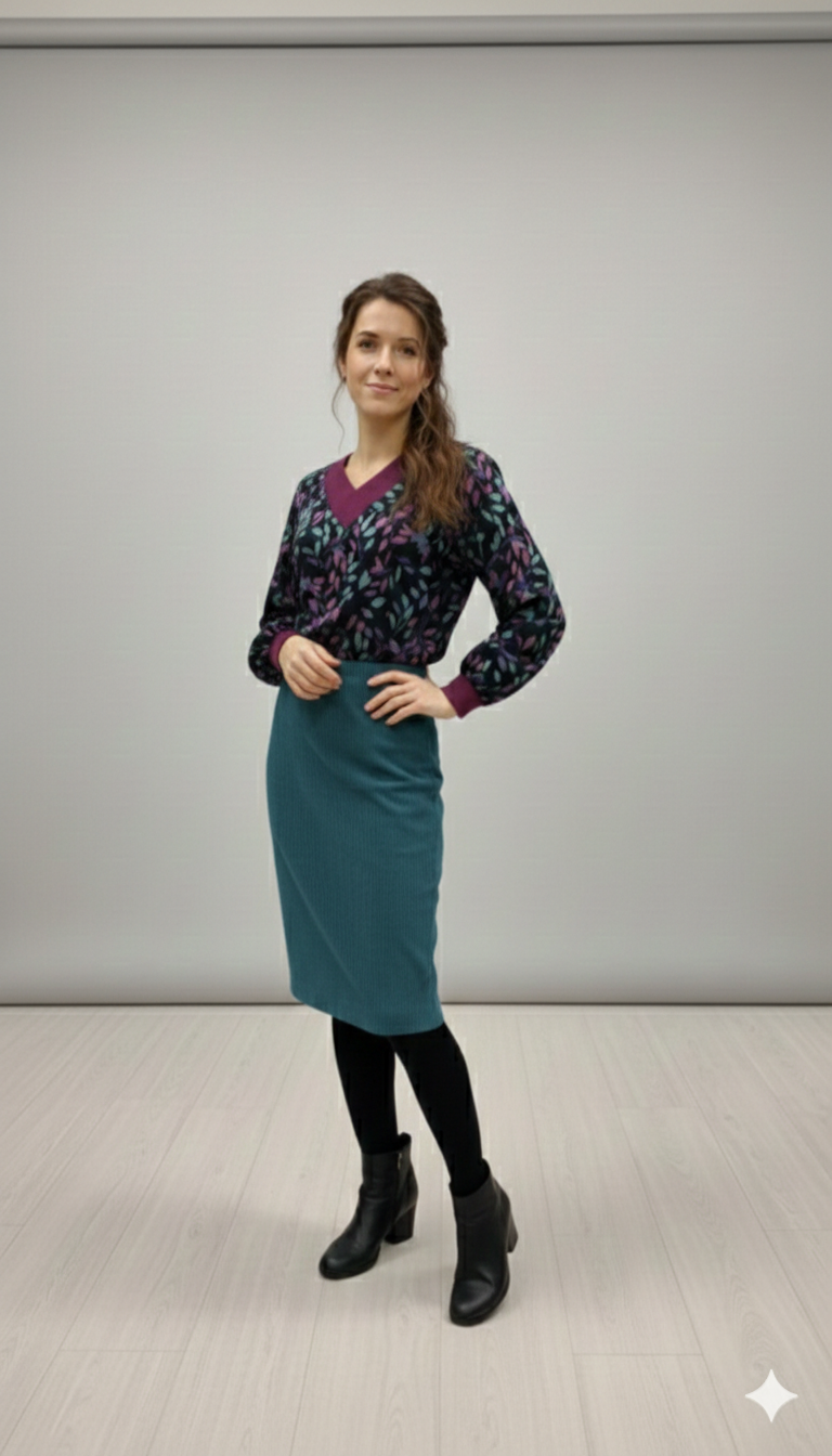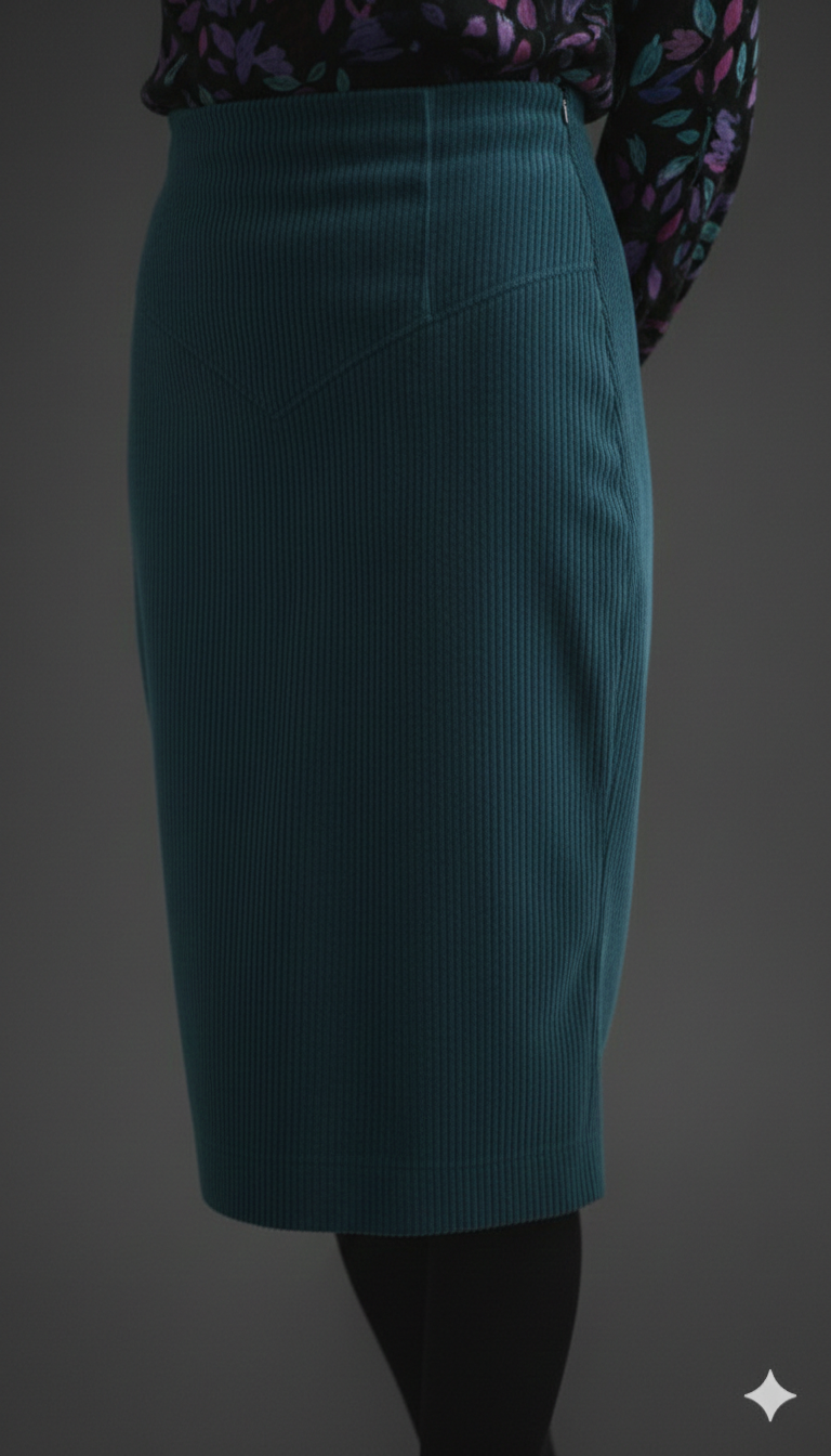 Tato krásná sukně je vytvořena z pružného manšestru, který zahřeje v chladnějších dnech. Navíc má hladkou podšívku, díky které neulpívá na punčochách. Sukně je také vybavena překrytým rozparkem v zadním díle.