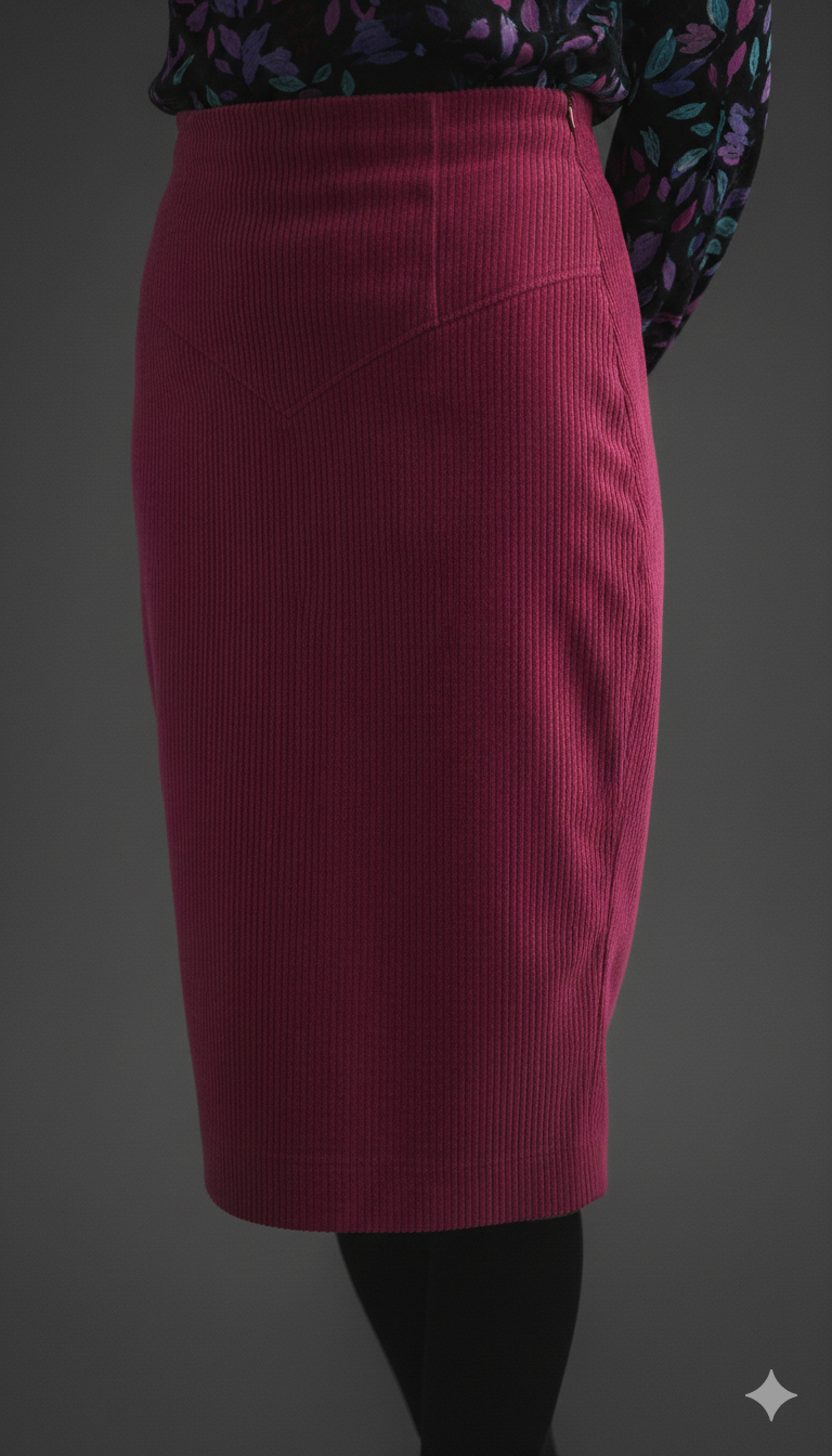 Tato krásná sukně je vytvořena z pružného manšestru, který zahřeje v chladnějších dnech. Navíc má hladkou podšívku, díky které neulpívá na punčochách. Sukně je také vybavena překrytým rozparkem v zadním díle.