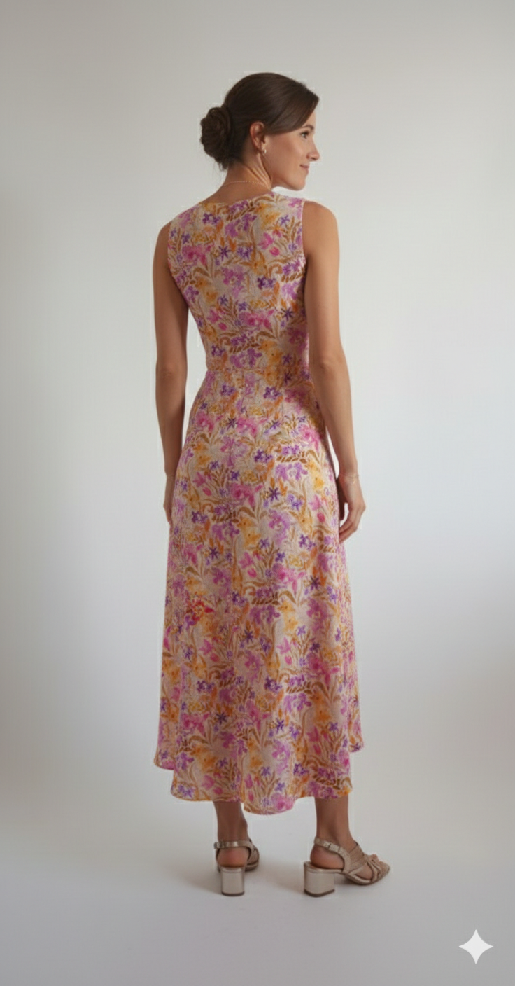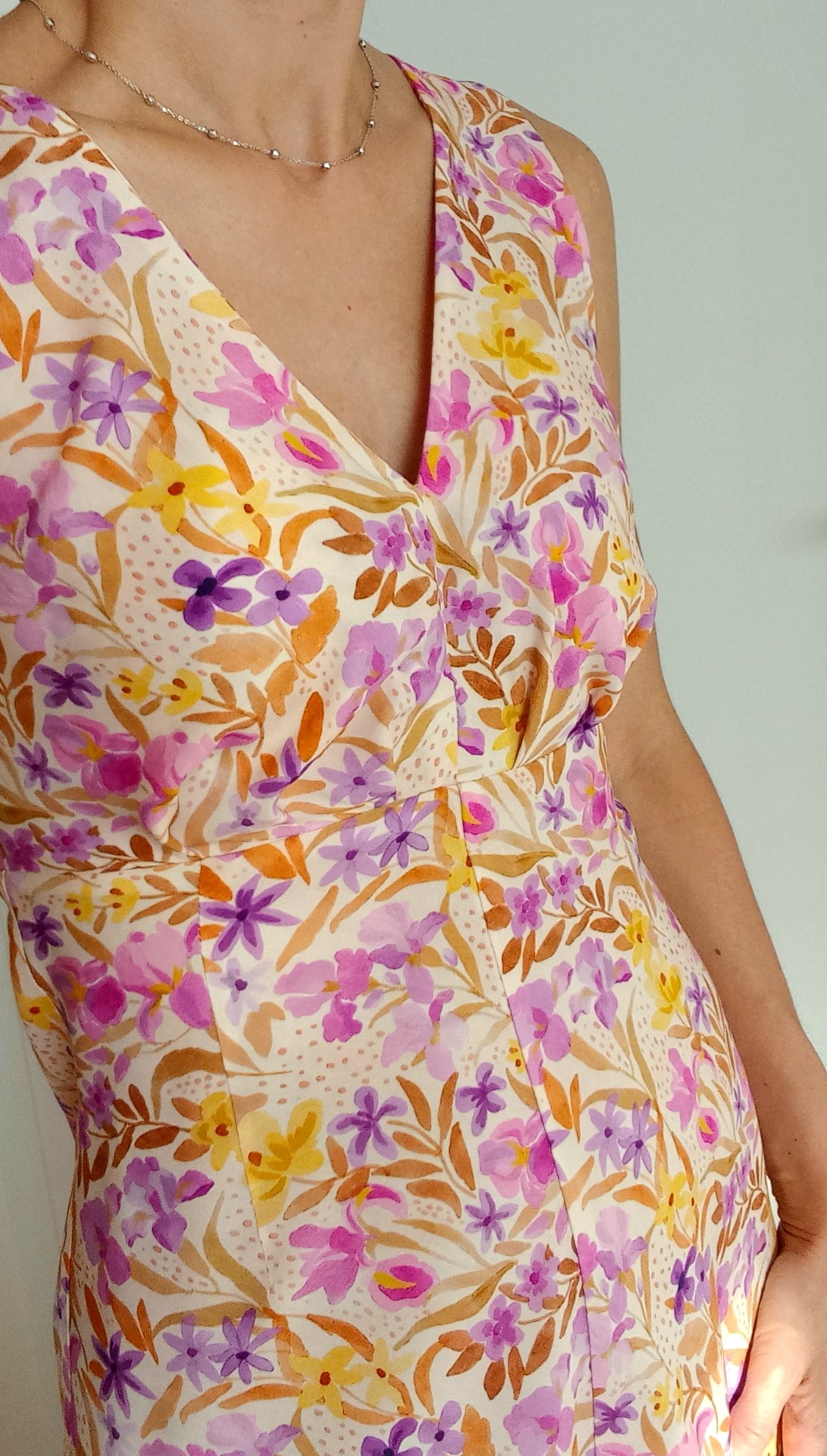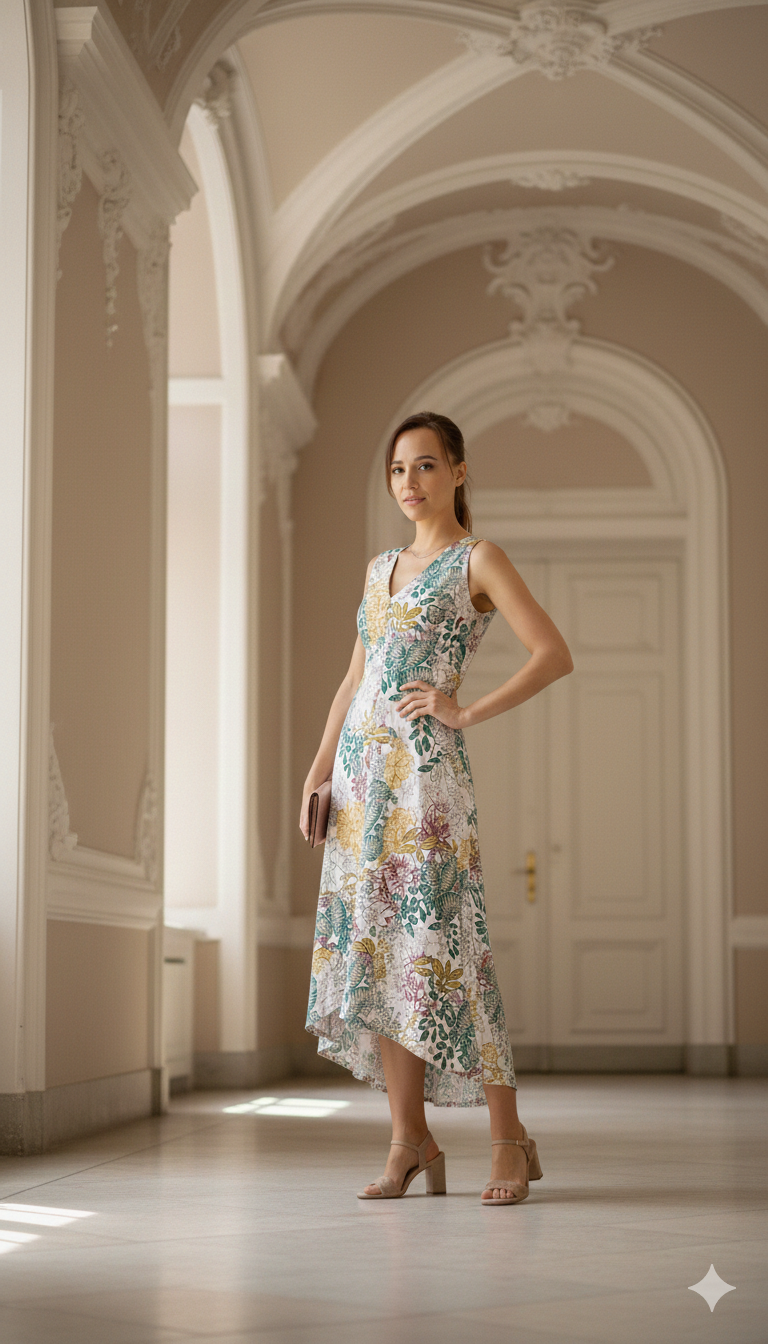 Lehounké luxusní šaty z viskózy se postarají o Vaše pohodlí nejen v horkých letních dnech. Živůtek je z dvojité vrstvy materiálu. Sukně ve předu vykrojená do oblouku a vzadu naopak prodloužená pro optické prodloužení postavy. Šaty se zapínají na zip v zadním díle.